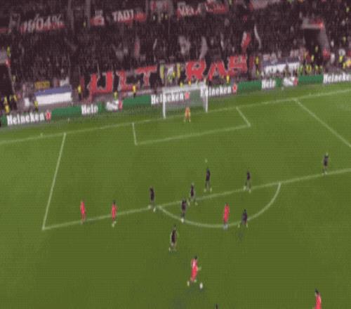 上半场补时第3分钟,巴黎圣日耳曼后场断球,立即发动快速反击,接到阿什拉夫的传球,杜埃上演完美世界波,梅开二度。