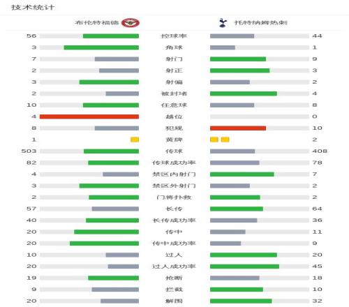 北京时间1月2日英格兰足球顶级联赛 联赛 第19轮,布伦特福德主场对阵托特纳姆热刺。上半场,沙德进球因越位在先被吹。下半场,两队依旧毫无建树,热刺全场只有3射正。全场比赛结束,热刺0-0布伦特福德。