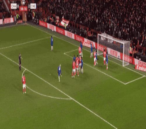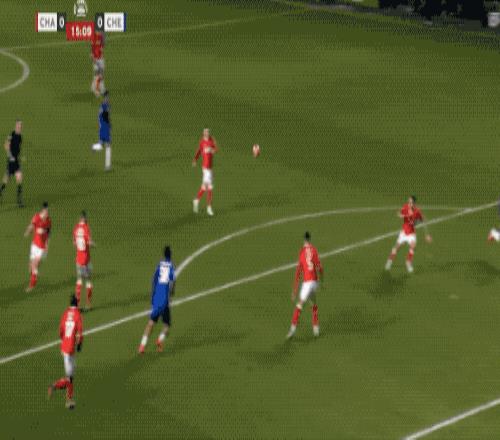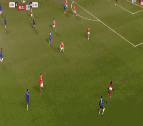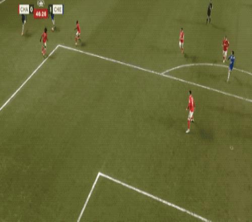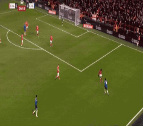 第34分钟,切尔西在前场连续一脚传球,阿昌庞的远射力量十足,门将奋力将球扑出。