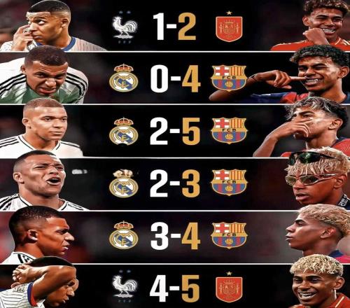 全面压制!亚马尔近6次对阵姆巴佩的比赛全部获胜 -