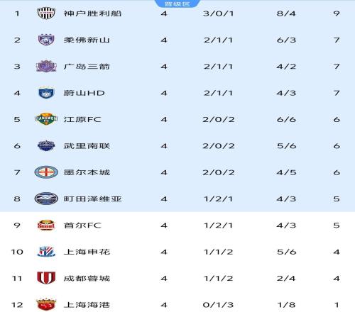 亚冠精英赛4轮积分榜:中超3队包揽倒数3名,J联赛劲旅9分领跑 -